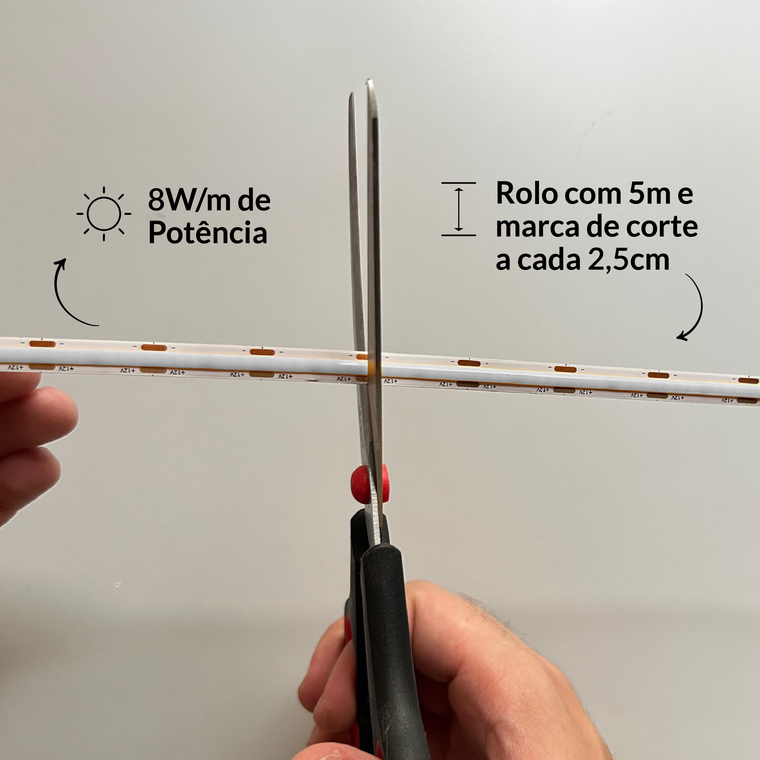- Flexibilidade: A fita é vendida em rolos de 5 metros com linhas de corte a cada 2,5cm, permitindo a personalização do tamanho para se adaptar a qualquer projeto.