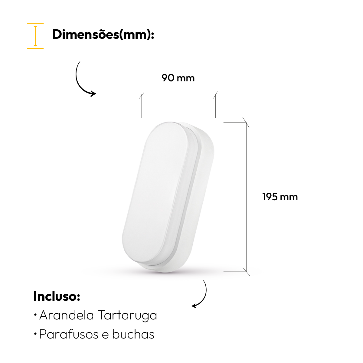 - Tipo de instalação: Sobrepor (acompanha parafusos e buchas p/ fixação).
