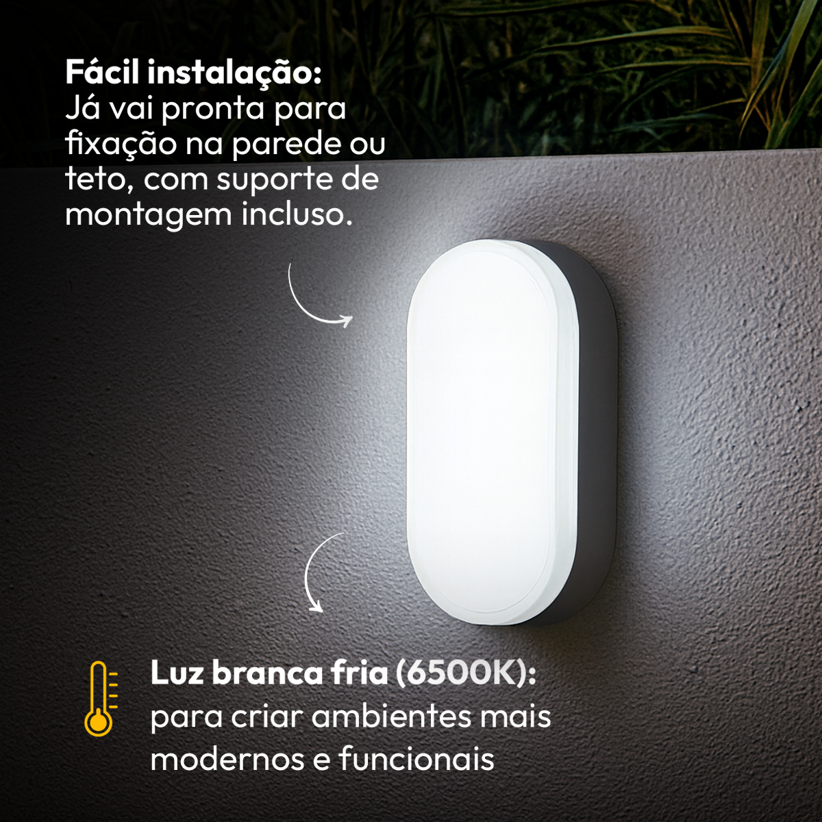 A Arandela LED Tartaruga é indicada para ambientes externos, residenciais ou comerciais, como rampas de acesso, garagens, escadas, varandas, muros, etc.