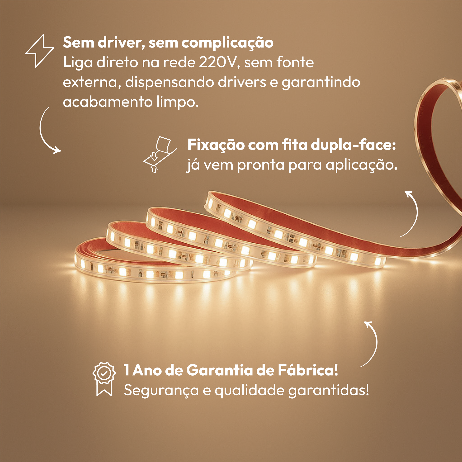 Fita Led Facile 10w 50m 4000K 220V Tensão Direta Alut