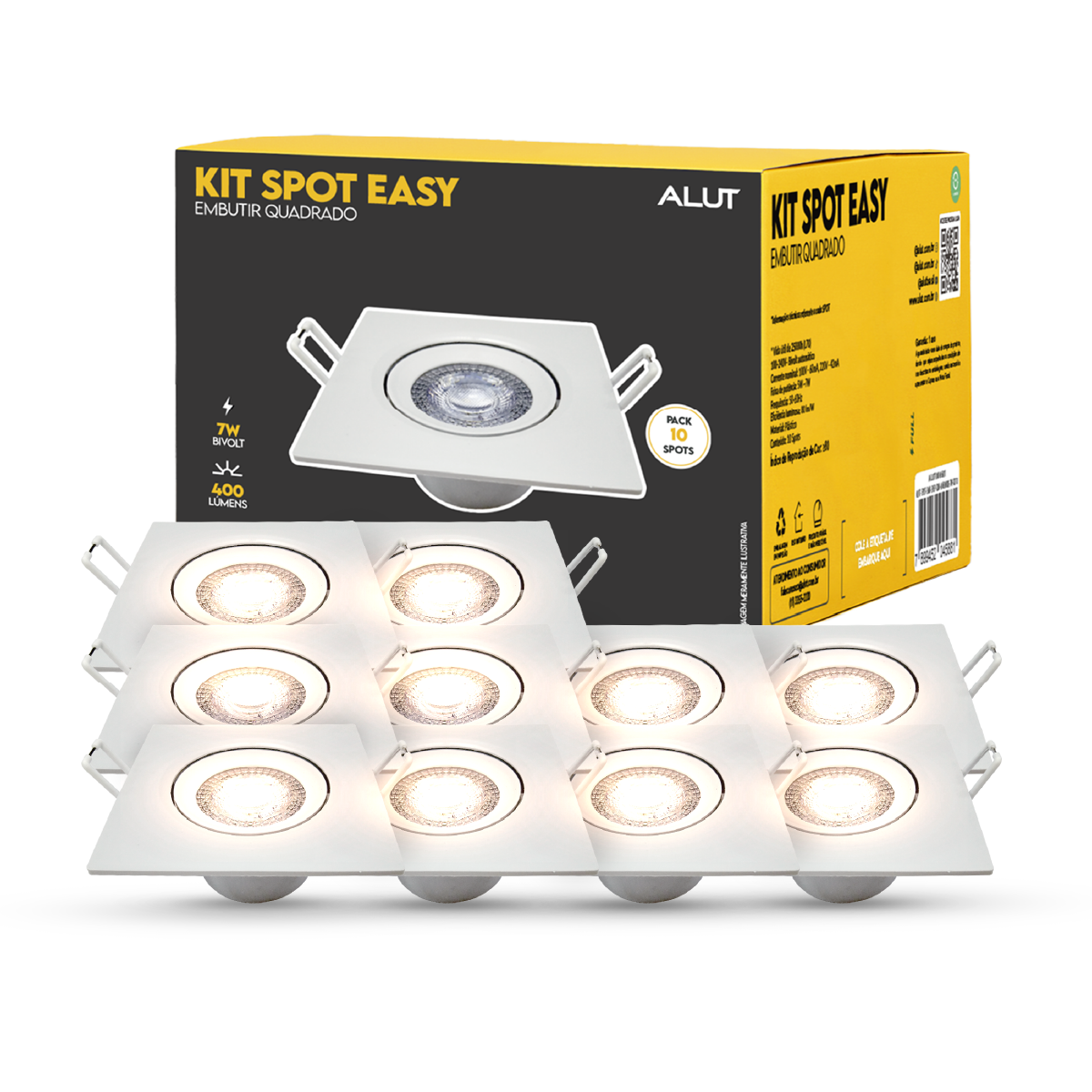 Kit 10 Spot de Embutir 7w 3000k Bivolt Quadrado Alut