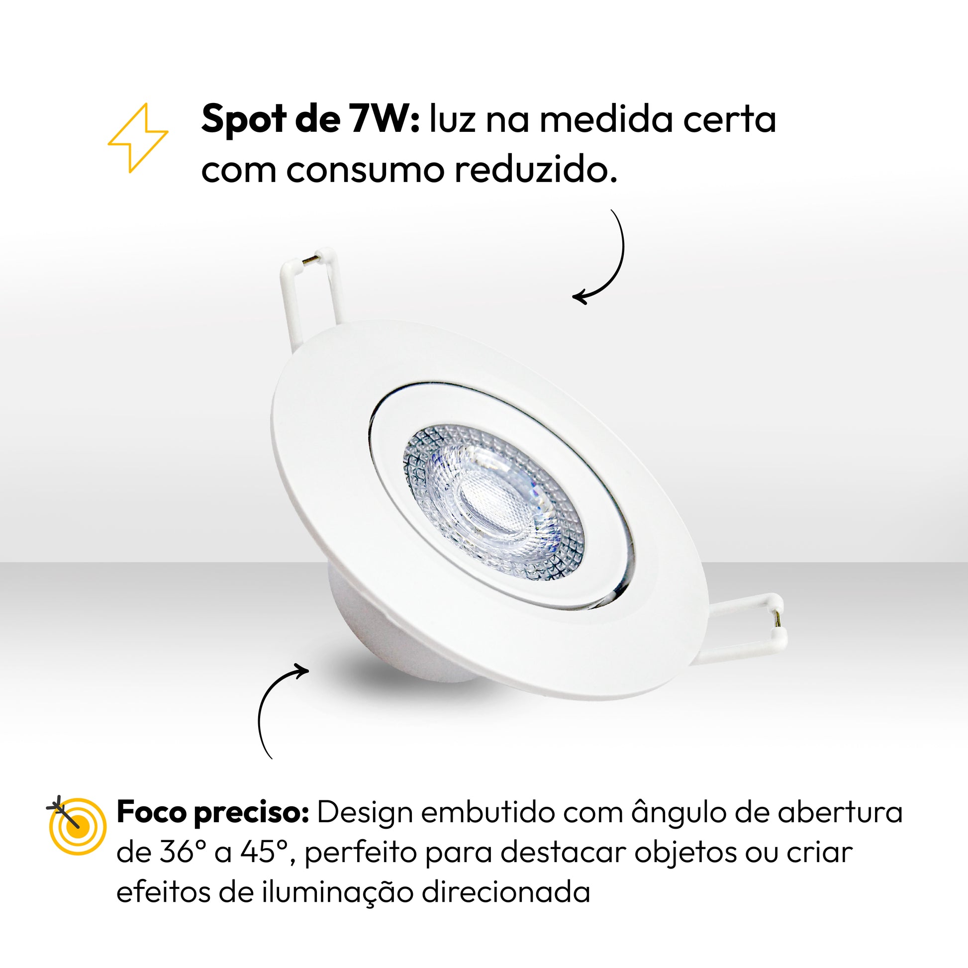 Kit 10 Spot Led Emb 7w 3000k 110v/220v Redondo Branco Alut