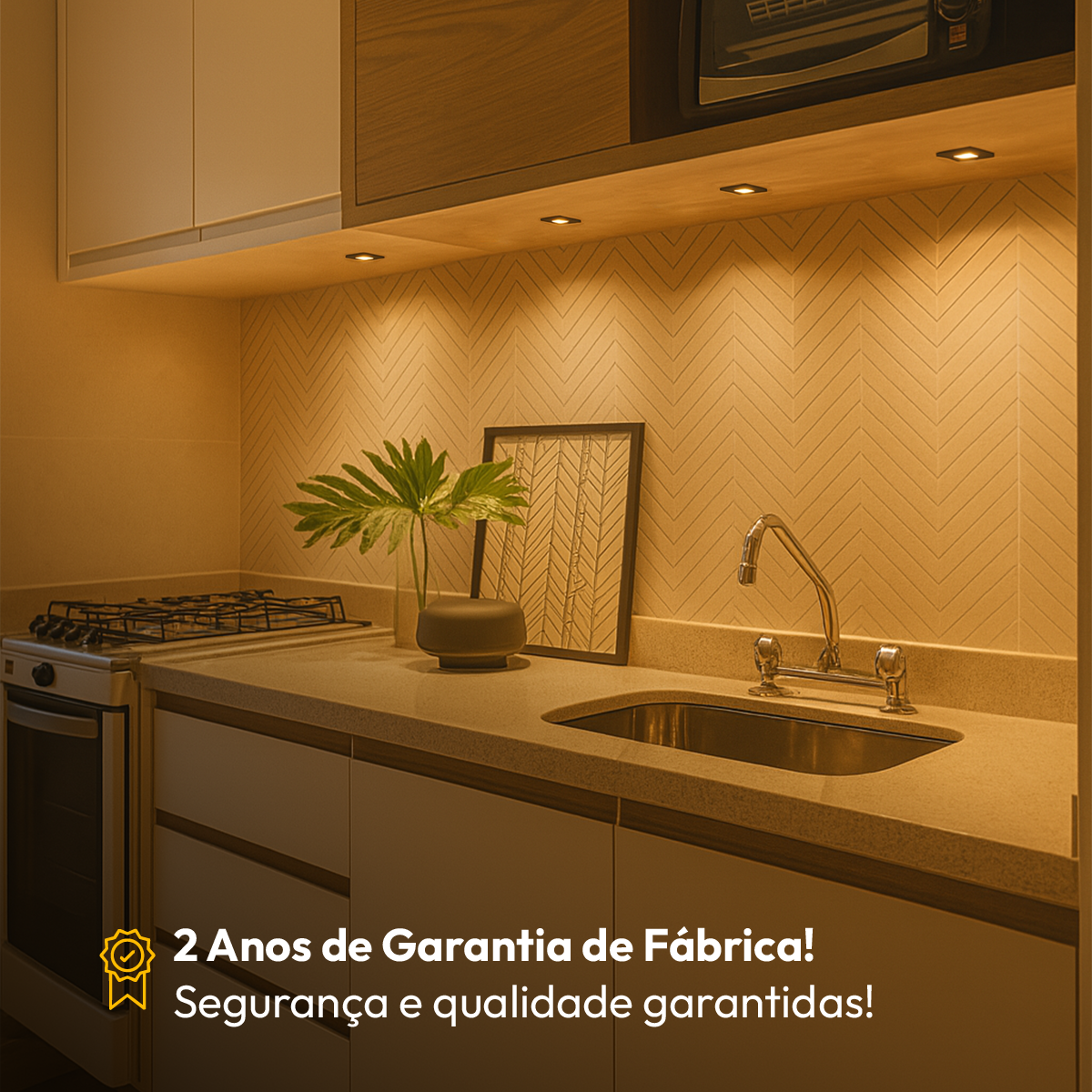 Material: Corpo fabricado em plástico de alta durabilidade com lente em policarbonato. Tecnologia: LED Integrado, garantindo eficiência e longa vida útil. Eficiência Energética: Baixo consumo de energia elétrica. Design: Modelo quadrado, proporcionando um visual moderno e integrado ao móvel.