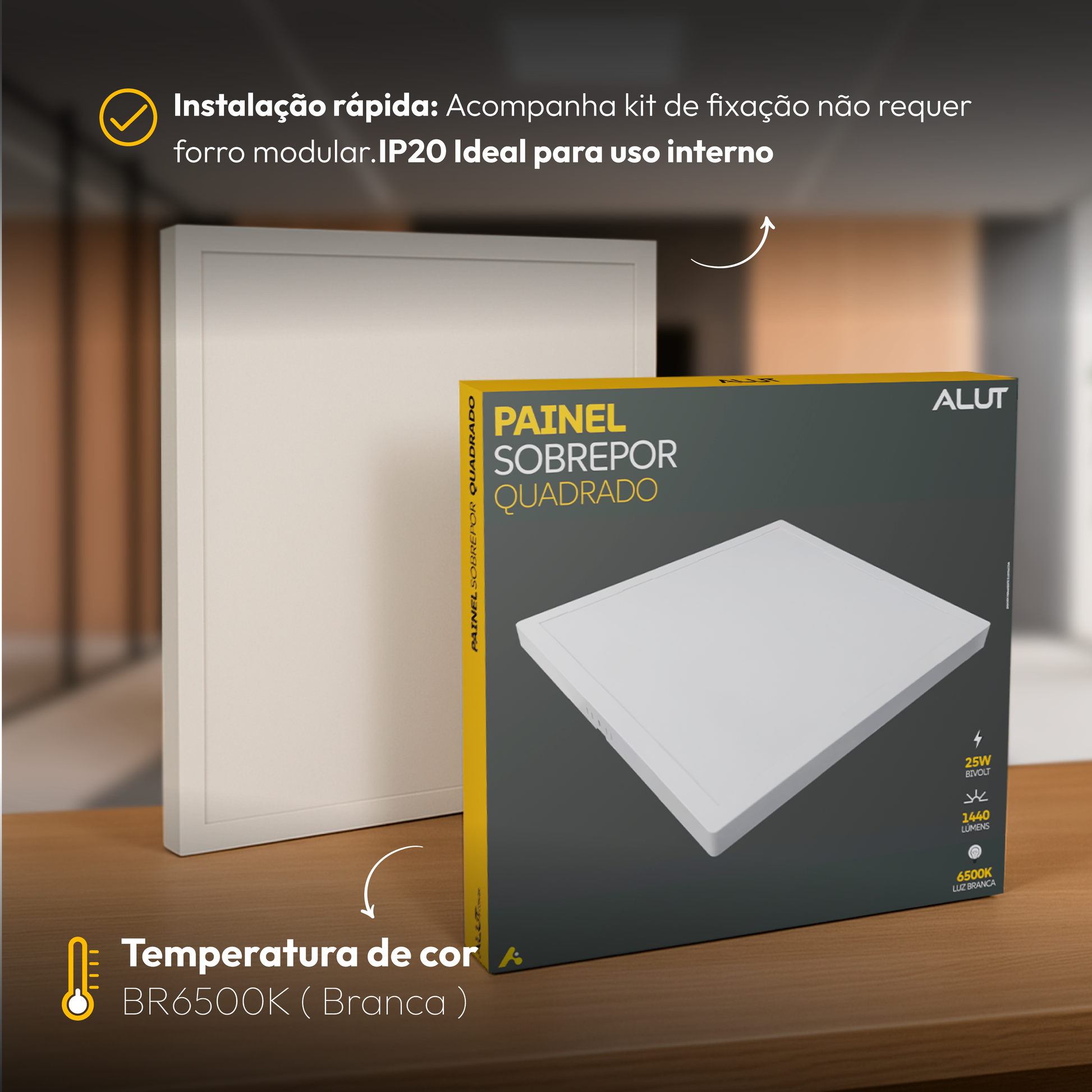 Painel Led Plafon Easy 25w 6500k Sobrepor Quadrado Alut