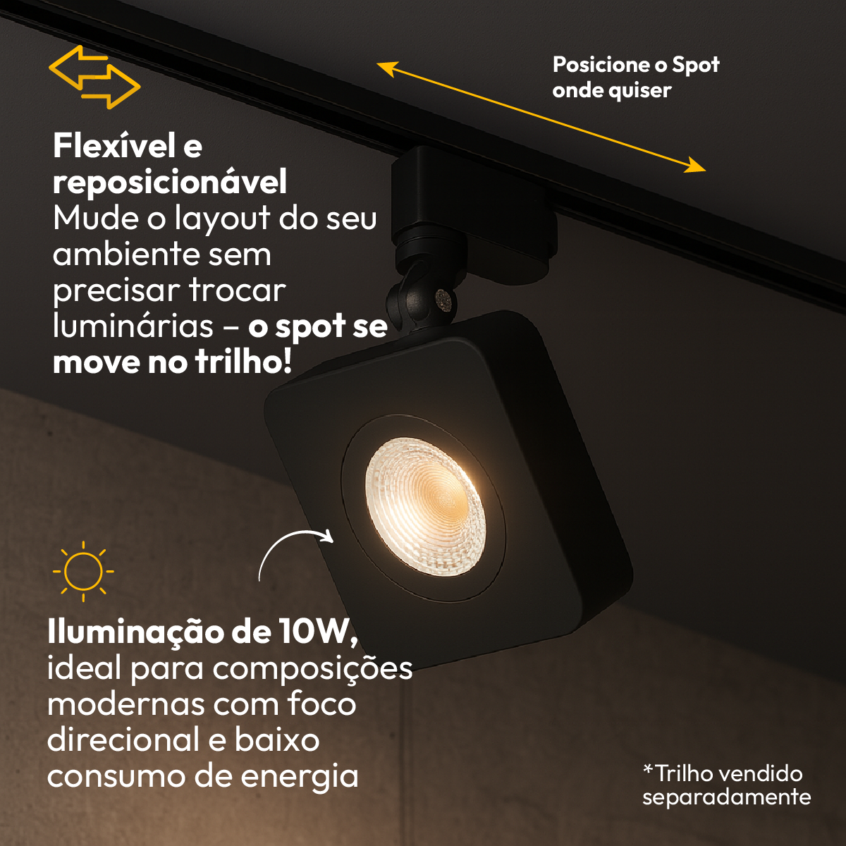 Ilumine seus ambientes com o Spot Trilho Linea, ideal para destacar áreas específicas com elegância e praticidade. Seu design moderno e discreto se integra perfeitamente a diversos estilos de decoração, sendo perfeito para salas, quartos, lojas, closets e corredores. Com fácil instalação e encaixe compatível com o Trilho Versalles, a instalação é simples e rápida.